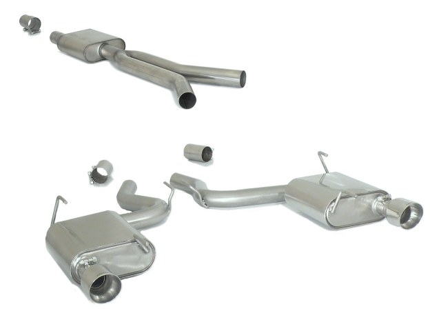 Mittelschalldämpfer in Edelstahl + Endschalldämpfer in Edelstahl rechts/links mit ER 102 mm rund Sport Line